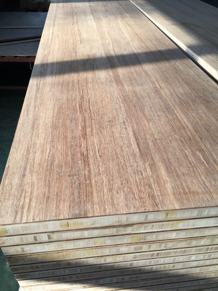 Strand vævet bambus board bruges som køkkenbord toppe, forfængelighed toppe, bordplader osv... primært fra to stilarter, et er fuld solid strand vævet, en anden er at laminere det tynde strand vævet finér onsolid bambus panelet ansigt/ryg, andlaminated strand vævet med solid bambus er den mest populære måde for bordplader og tabel tops.which normalt lamineret lim på Solid bambus Panels'face og bagsiden så at have farver af Strad vævet Couner tops'Chocalate, naturlige og Tiger farver. Normal lamineret ansigt/ryg lagtykkelse er 4mm / 5mm / 6mm/7 mm. Sturucture er Cross-vandret eller Cross-lodret struktur. Sådanne Countertopshave strålende fordele af stabilitet og hårdhed er højere end solid bambus bordplader.